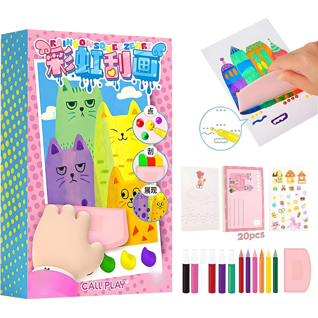 Perfect for art time, school activities, birthday gifts, party favours or travel entertainment, this rainbow scratch art set transforms simple scratching into a world of colour, imagination and storytelling.