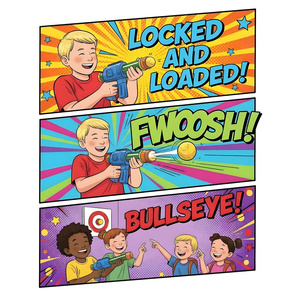 <p><b>Crackles PowerStrike Foam Ball Blaster Toy Gun</b> brings thrilling action play to your child’s hands with safe and soft foam fun! This air-powered blaster uses <i>pneumatic pump action</i> — simply pull back, push forward, and watch the soft foam balls shoot out with satisfying speed.</p> <p>Made from <b>durable, child-safe plastic</b> and equipped with <b>lightweight EVA foam balls</b>, this toy ensures *safe playtime* indoors or outdoors. Its smooth edges and ergonomic handle make it easy for kids to grip, while the *manual pump mechanism* improves <i>hand-eye coordination</i> and <i>motor control skills</i>.</p> <p>Each set includes <b>1 PowerStrike Blaster</b> and <b>8 bright yellow foam balls</b> that are reusable, soft, and safe. No batteries, no mess — just pure fun and energy! Ideal for *family games, park play, or birthday parties*.</p> <p>Whether you’re looking for an <i>outdoor toy gun, birthday gift, or party favor</i>, the Crackles PowerStrike Foam Ball Blaster delivers joy, action, and learning — all in one!</p> <p><b>Recommended Age:</b> 6 years and above <br> <b>Includes:</b> 1 Foam Blaster Toy Gun, 8 Soft EVA Foam Balls <br> <b>Material:</b> Non-toxic ABS Plastic and EVA Foam</p>